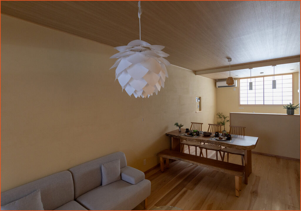 本漆喰を使った音響室や土壁のリビング